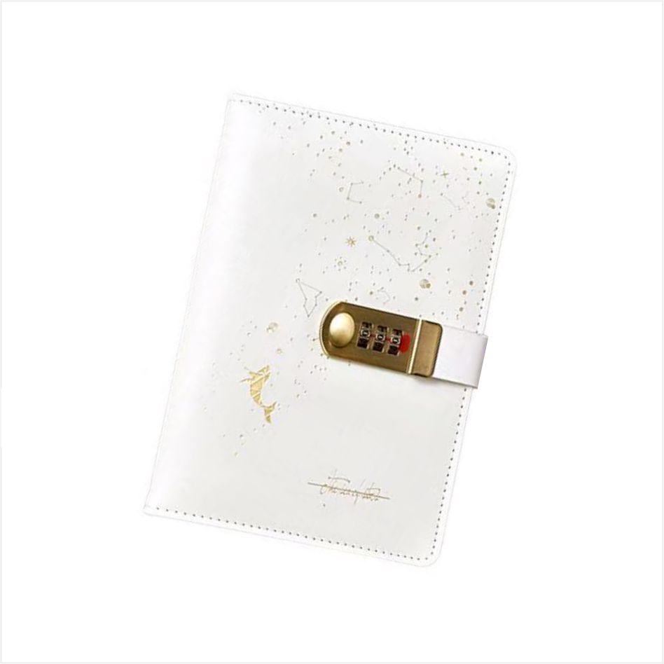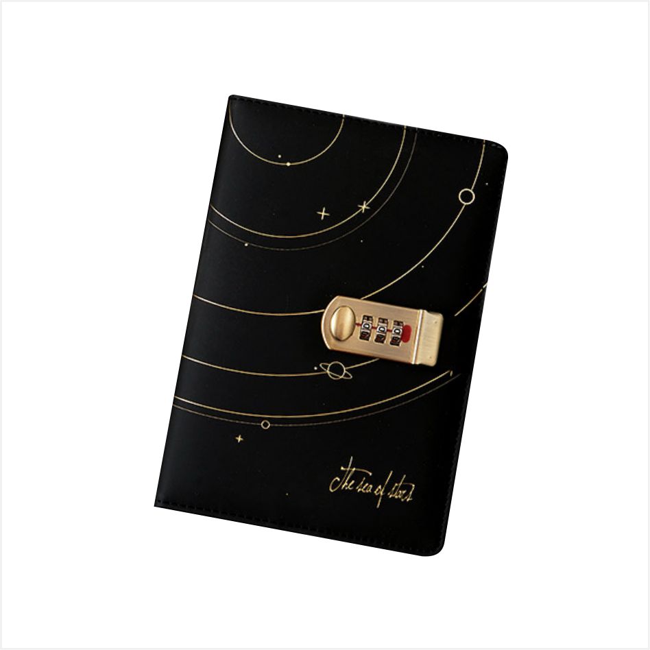 열쇠가 달린 이 일기장의 표지는 절묘한 금도금 기술로 만들어졌으며, 마치 신비로운 밤하늘을 그림에 응축한 것처럼 조용하고 상상력이 가득한 단순한 선과 별과 같은 작은 점들로 점선으로 이루어진 행성 궤도와 유사한 궤적의 윤곽을 그립니다. 세 자리 비밀번호로 제어되는 황금색 금속 조합 잠금 장치가 장착되어 있습니다. 나만 콘텐츠를 열 수 있도록 자신만의 비밀번호를 설정할 수 있습니다.