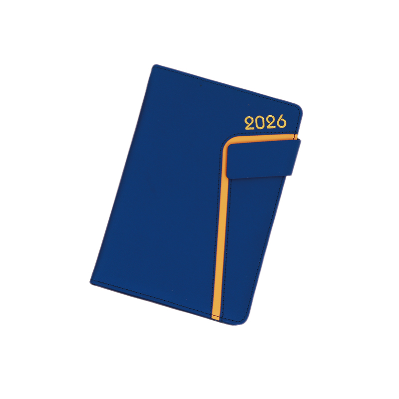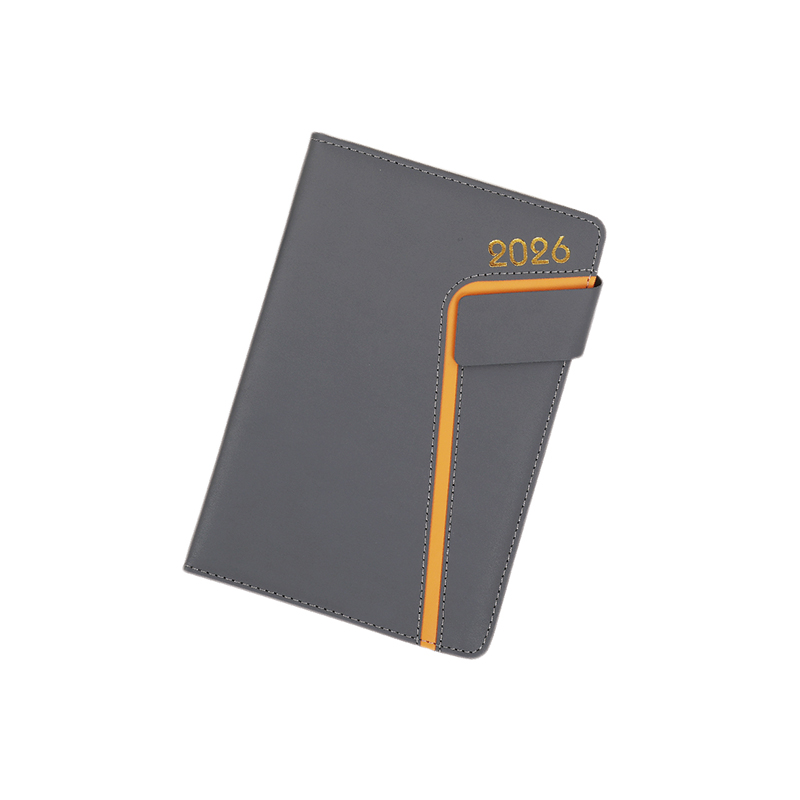 이 독일 노트북에는 단순하고 독특한 디자인을 위해 섬세한 질감, 금도금 2026 로고 및 측면에 밝은 주황색 선이있는 PU 가죽 커버가 있습니다.