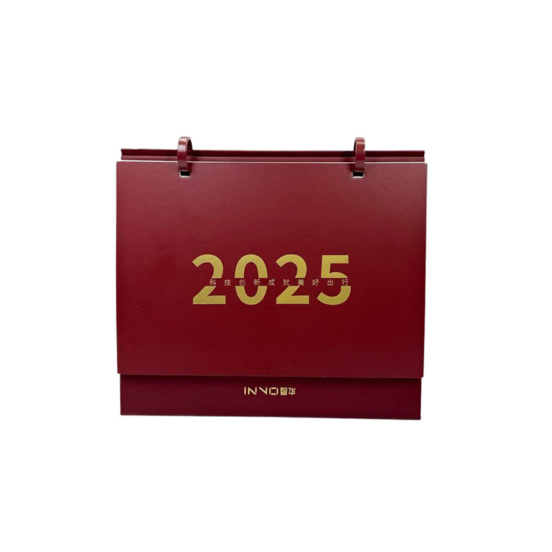 고품질 용지로 제작 된 Burgundy Cover는 Concave Gold 스탬핑 기술과 짝을 이룹니다. "2025 기술 혁신 아름다운 여행"이라는 단어는 단순하고 우아합니다. 금속 고리와 결합하여 매끄럽게 변하고 안정적이고 내구성이 뛰어납니다. 데스크탑에 배치됩니다